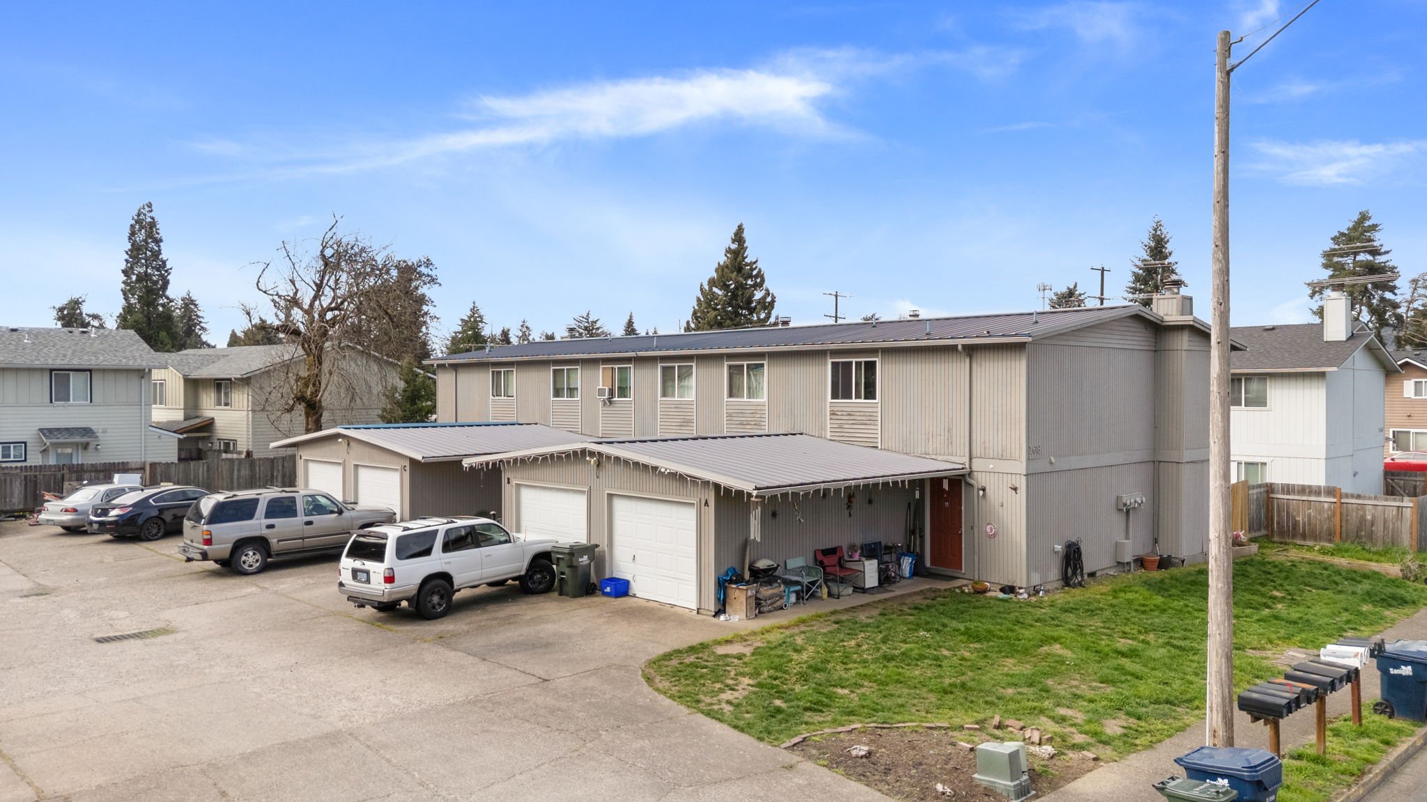 The 63rd Street Fourplex is a two-story multifamily property located at 168 S. 63rd Street in Springfield, Oregon. Built in 1979, the property sits on approximately 0.24 acres and consists of four residential units totaling approximately 4,940 square feet of living space. The unit mix includes two two-bedroom/one-and-one-half-bathroom units and two three-bedroom/one-and-one-half-bathroom units, offering spacious layouts that appeal to a wide range of tenants seeking larger floor plans in the Springfield rental market.